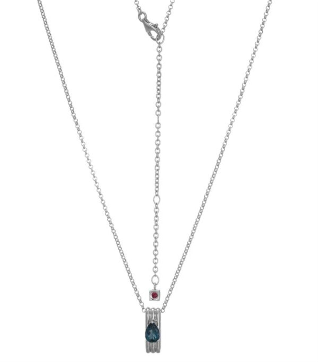 Elle Rhodium Plated Sterling Silver Blue Topaz Necklace - 17" + 3" Extension