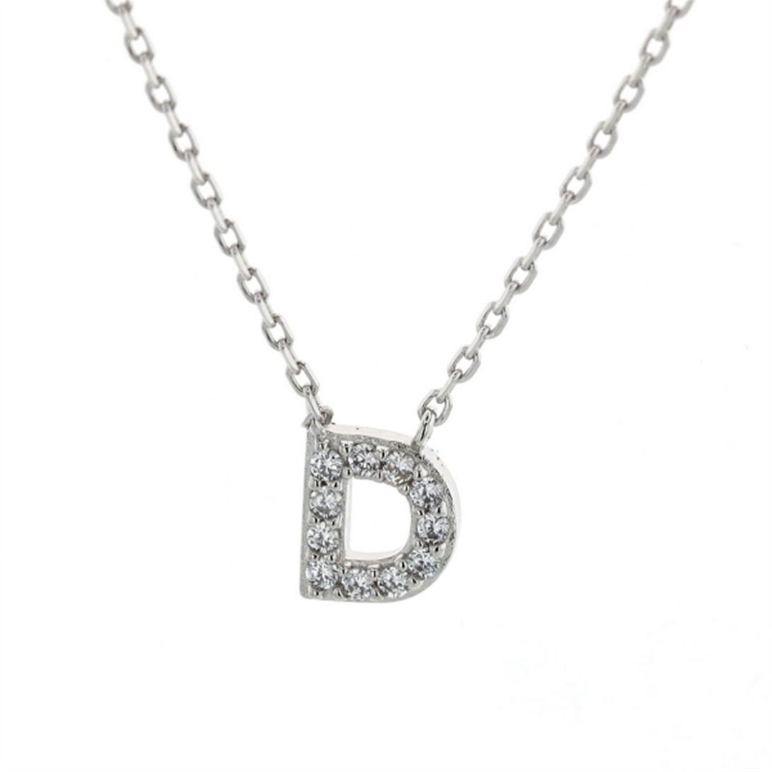 REIGN Sterling Silver Rhodium Plated CZ "D" 18" Necklace
