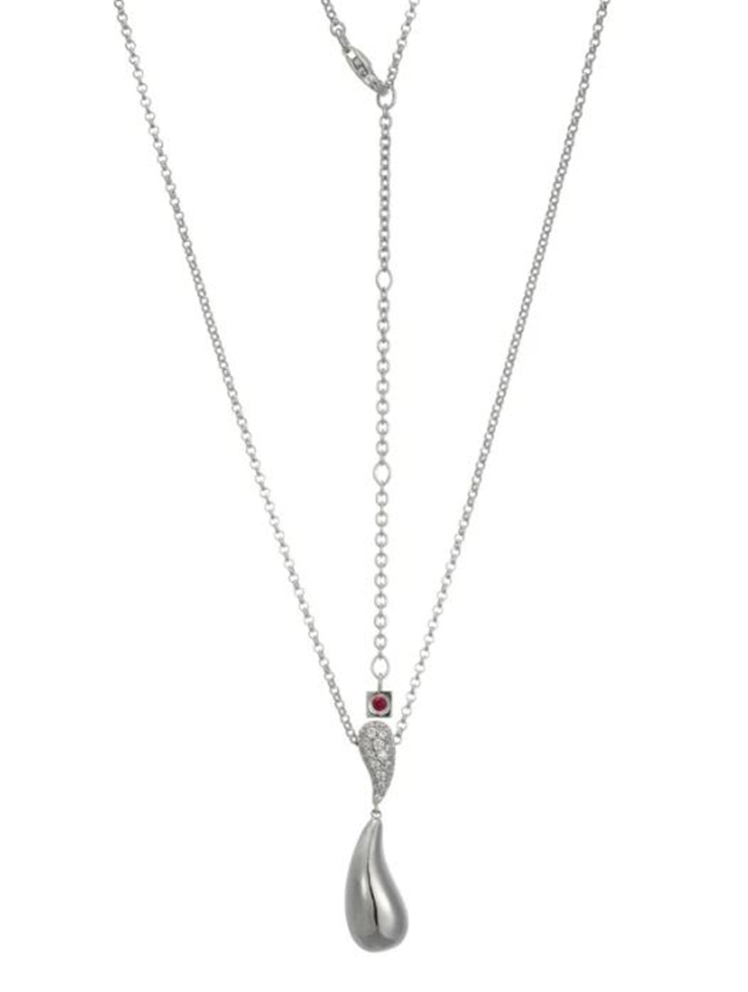 Elle Rhodium Plated Sterling Silver "Raindrop" Cubic Zirconia Necklace - 17" + 3" Extension