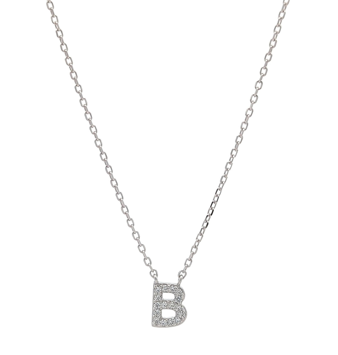 REIGN Sterling Silver Rhodium Plated CZ "B" 18" Necklace