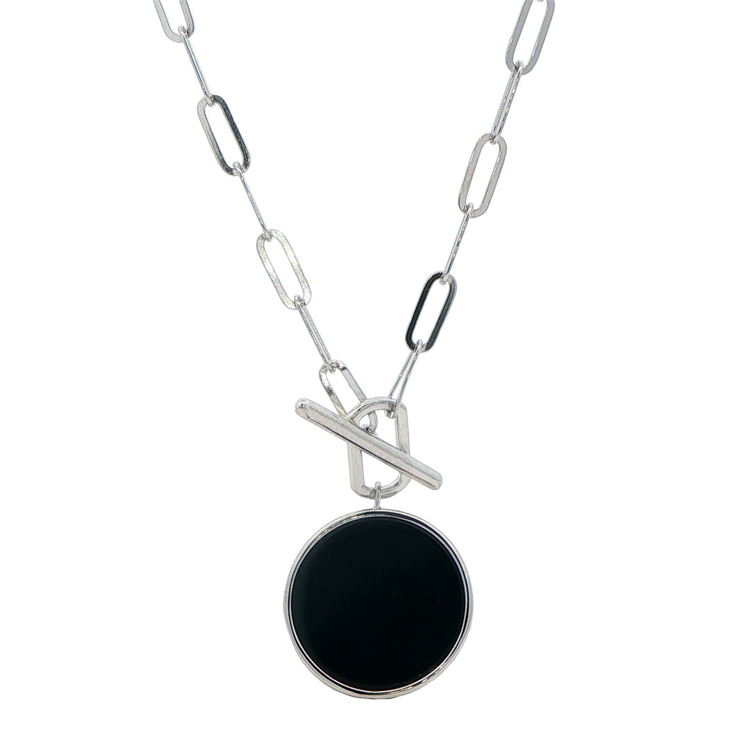 ELLE "Lustre" Sterling Silver Black Agate 18" Necklace
