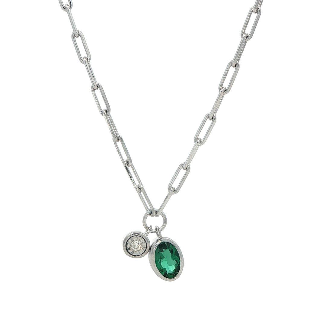 Monte Luna Sterling Silver May Birthstone Lab-Grown Emerald & Diamond 18" Necklace
