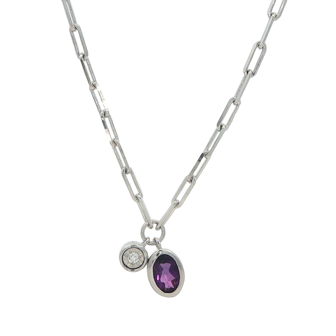 Monte Luna Sterling Silver February Birthstone Genuine Amethyst Lab-Grown Diamond 18" Necklace