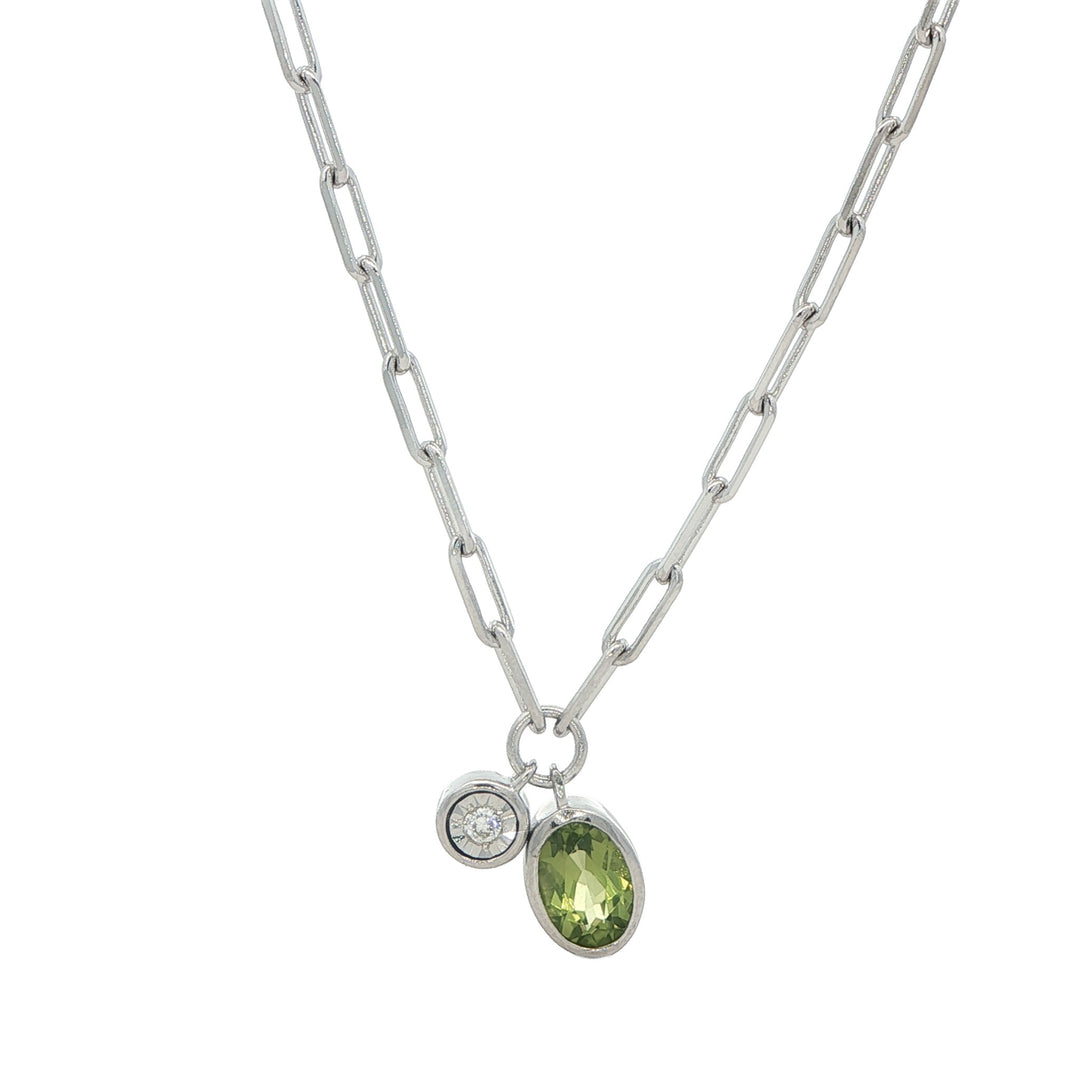Monte Luna Sterling Silver August Birthstone Peridot Lab-Grown Diamond 18" Necklace