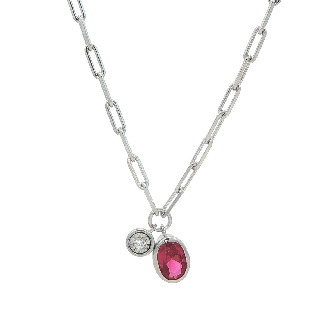 Monte Luna Sterling Silver July Birthstone Lab-Grown Ruby & Diamond 18" Necklace
