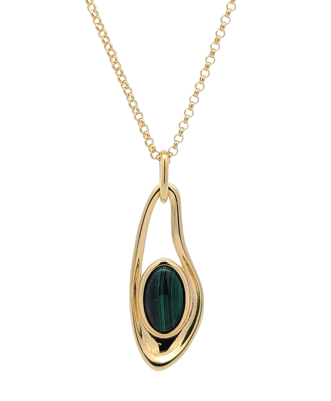 ELLE Sterling Silver Gold Plated "Galaxy" Malachite Oval 18+4" Necklace