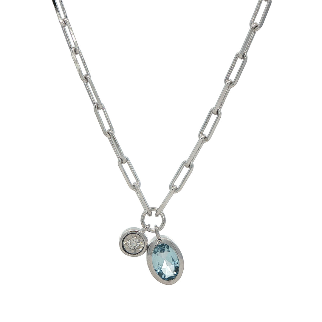 Monte Luna Sterling Silver March Birthstone Aquamarine Lab-Grown Diamond 18" Necklace