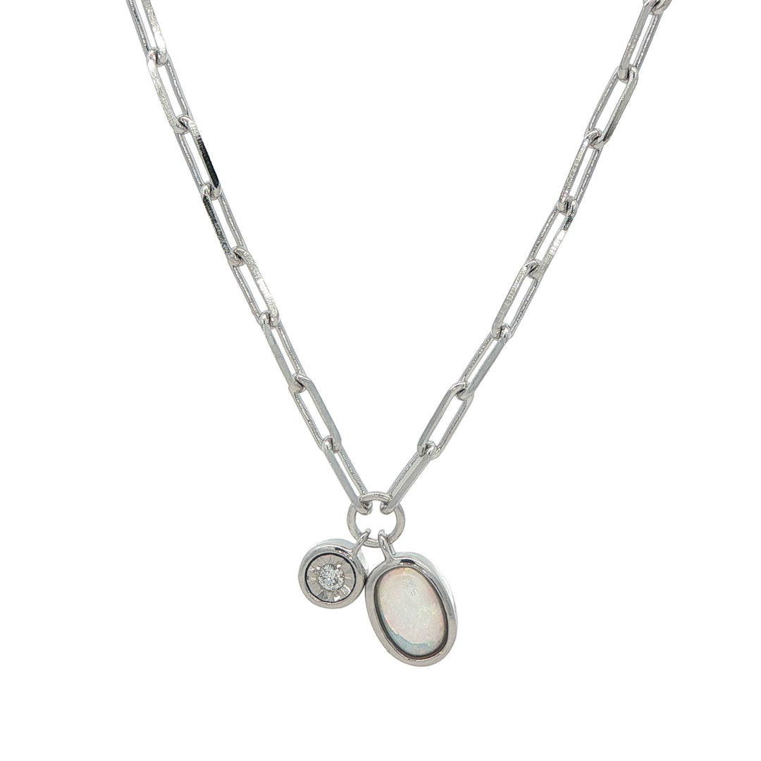 Monte Luna Sterling Silver October Birthstone Lab-Grown Opal & Diamond 18" Necklace
