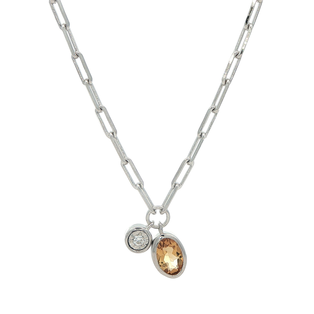 Monte Luna Sterling Silver November Birthstone Citrine Lab-Grown Diamond 18" Necklace