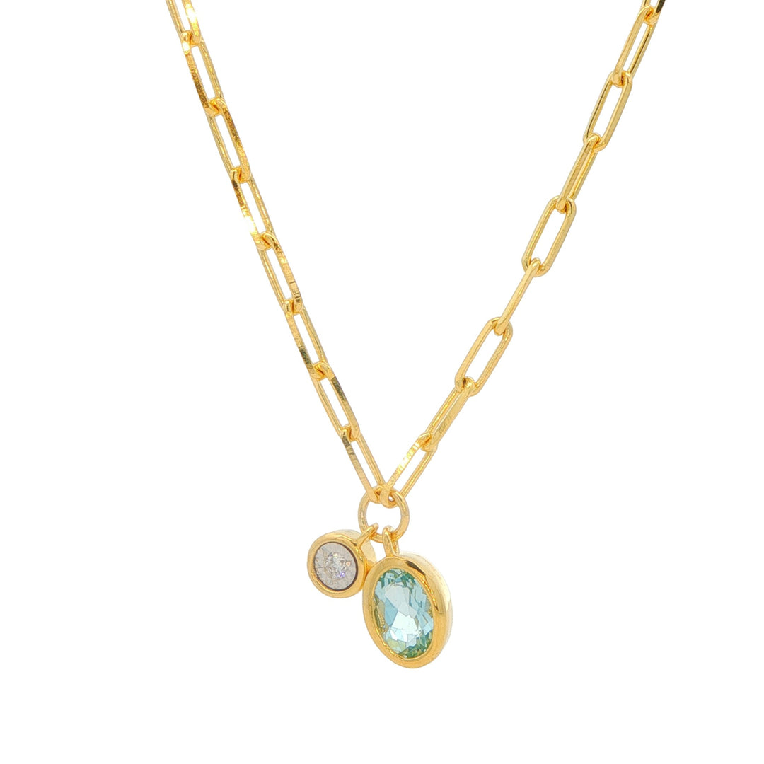 Monte Luna Gold Plated March Birthstone Aquamarine Lab-Grown Diamond 18" Necklace