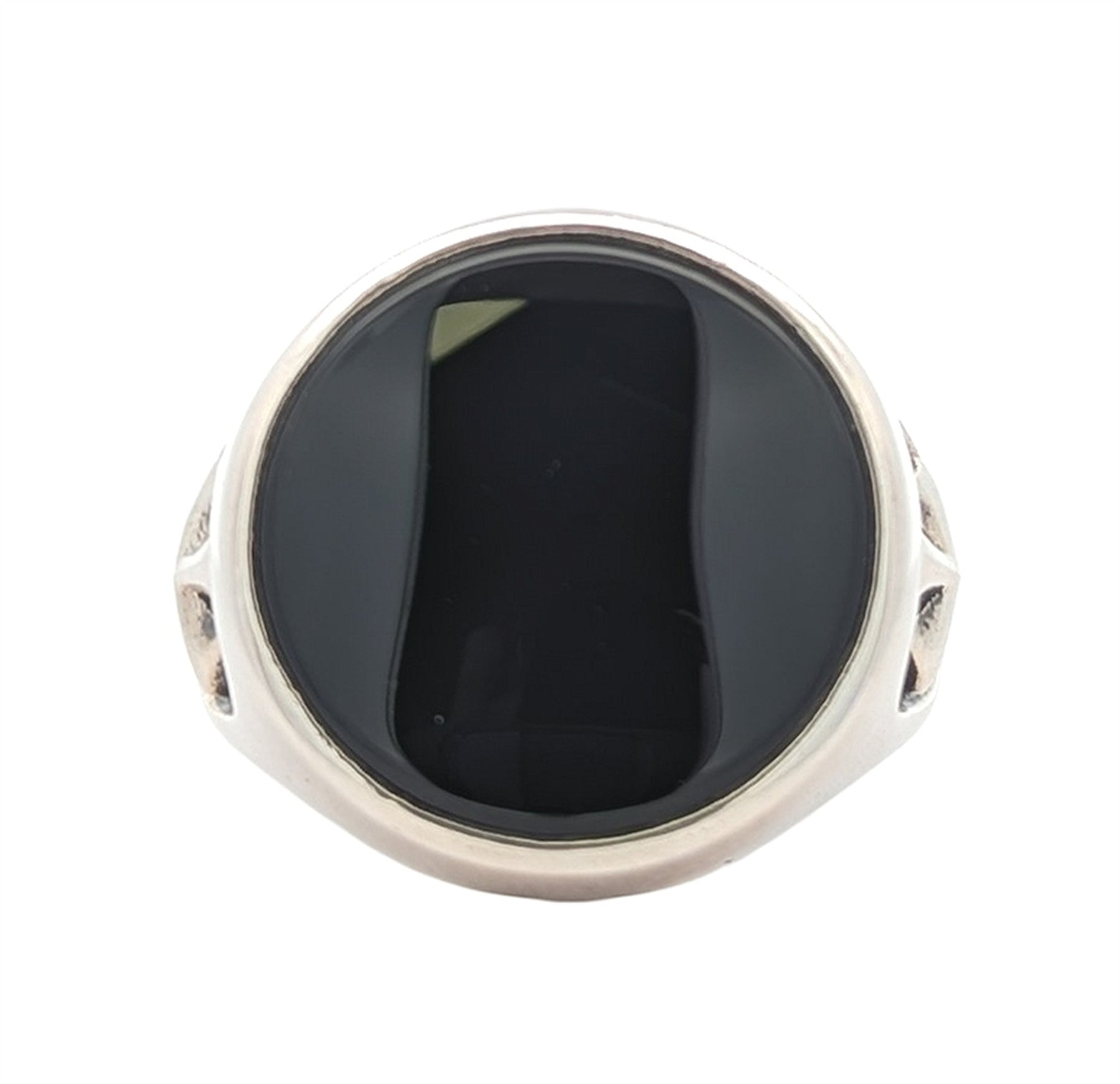 King Baby - Round Onyx Signet Ring w/ MB Cross Detail