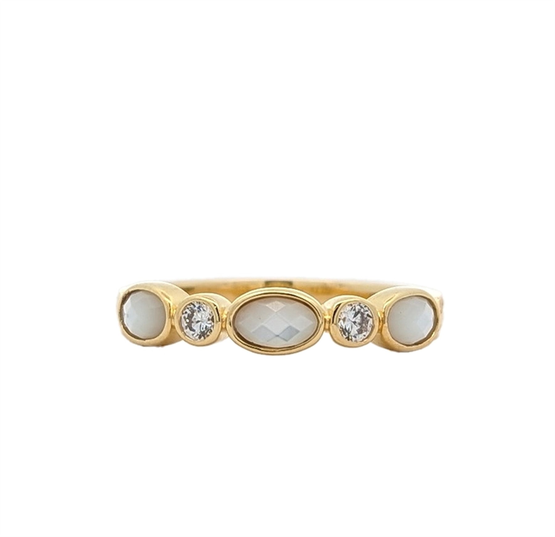 REIGN Gold Plated Mother Of Pearl And Cubic Zirconia Ring