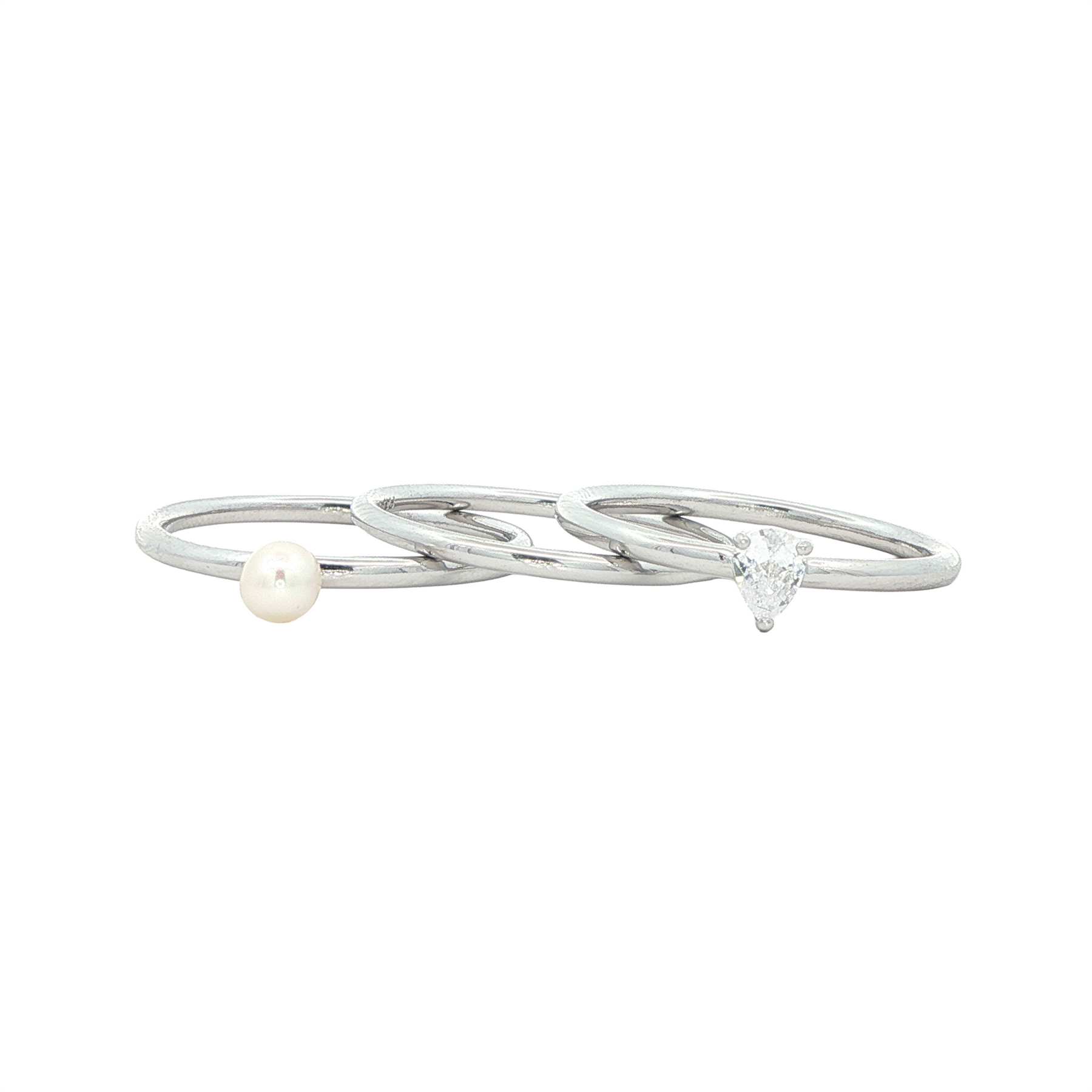 REIGN Sterling Silver CZ Pearl 3 Ring Set