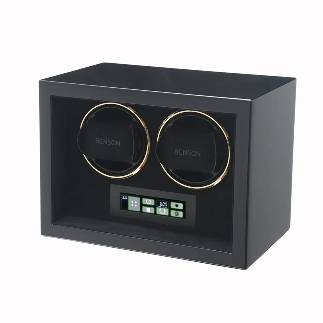 BENSON Compact Series Double Watch Winder in Black with Gold Rings