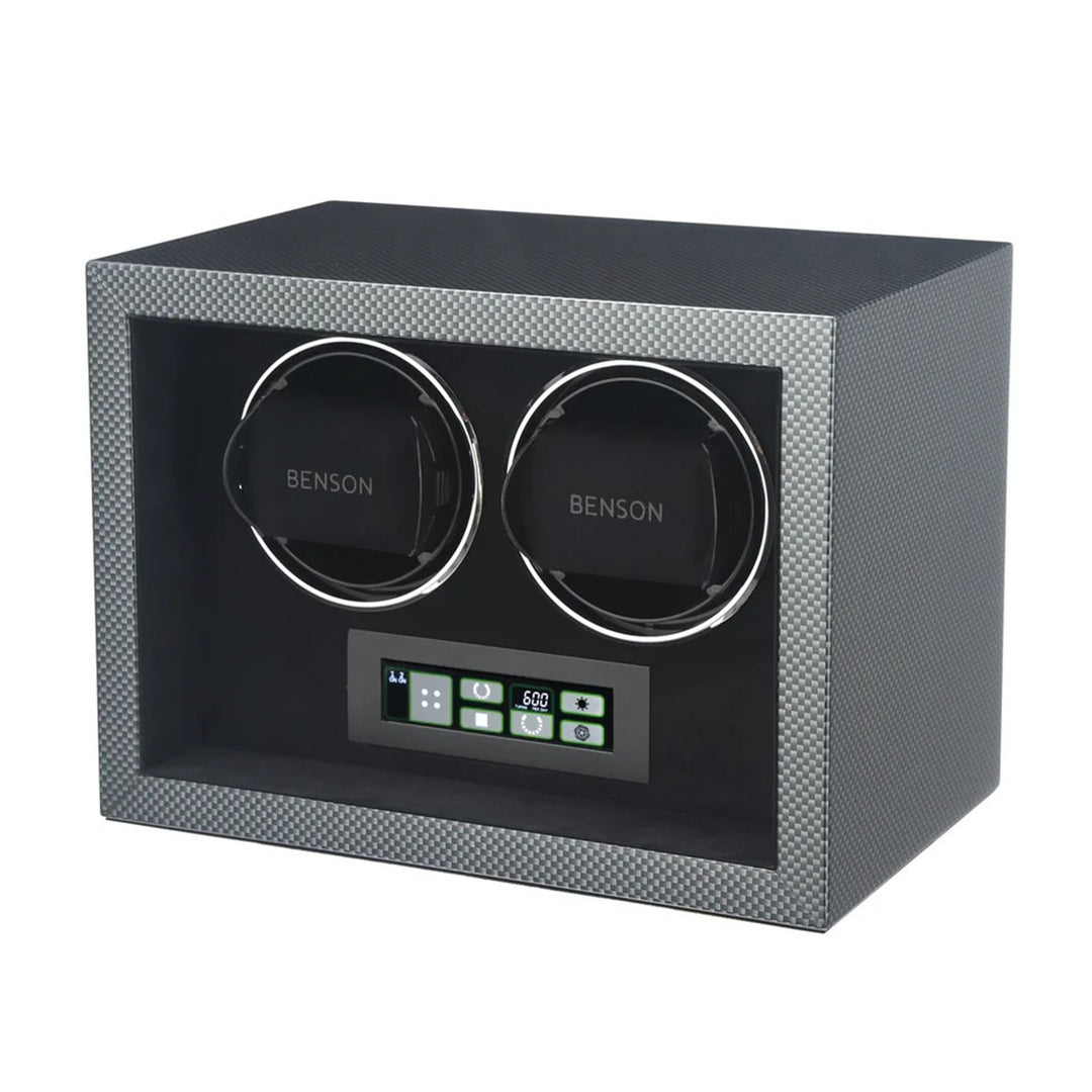BENSON Compact Series Double Watch Winder in Carbon Fiber with Silver Ring